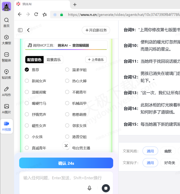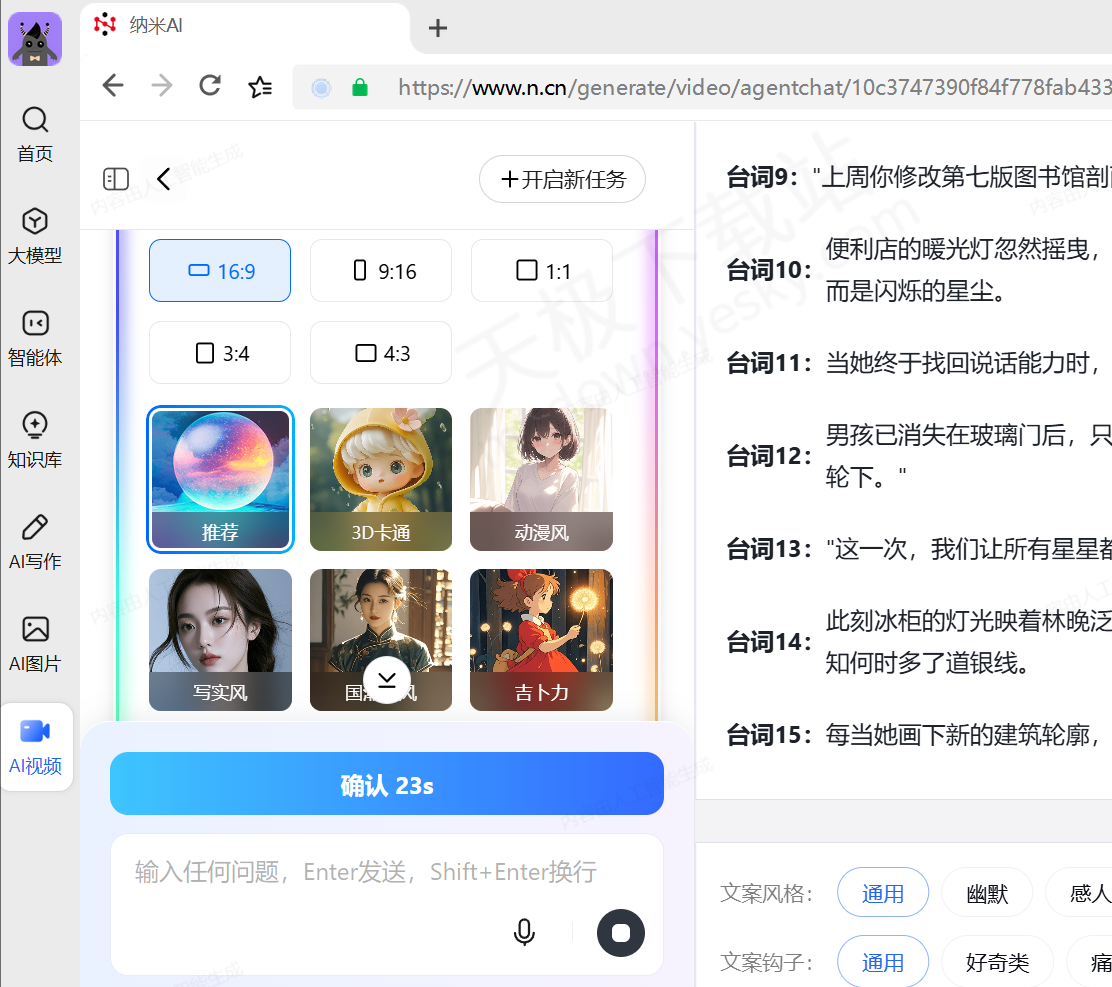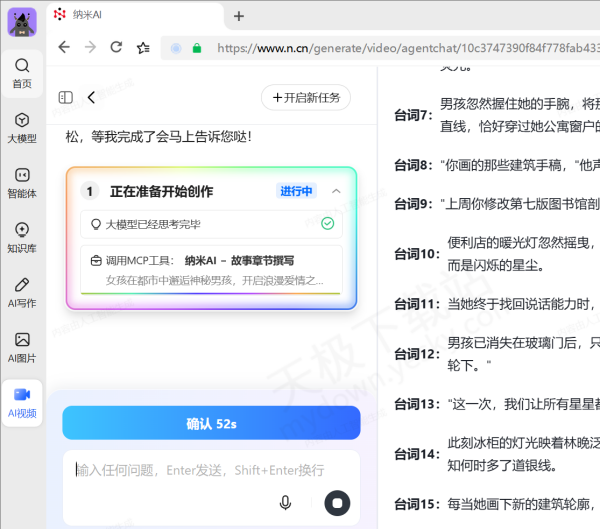 3.纳米AI会先生成故事章节,在右侧进行预览,满意的话点击左侧【确认】。