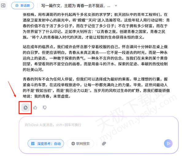 4.等待AI完成创作,点击左下角【复制】即可保存在本地。