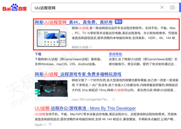 ●打开电脑浏览器,搜索“UU远程官网”,找到并打开官网网站。