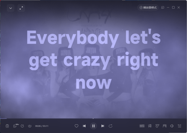 | Mini模式 | 可以最小化变成一个小浮窗,不耽误工作或者学习,并且小浮窗支持调节音量以及喜欢该歌曲,非常实用 |
