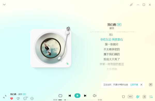 ●QQ 音乐:自带伴唱,支持伴唱调节,可以选择人声声音大或者伴奏声音大,歌曲支持伴唱试用30s开通超级会员畅享。