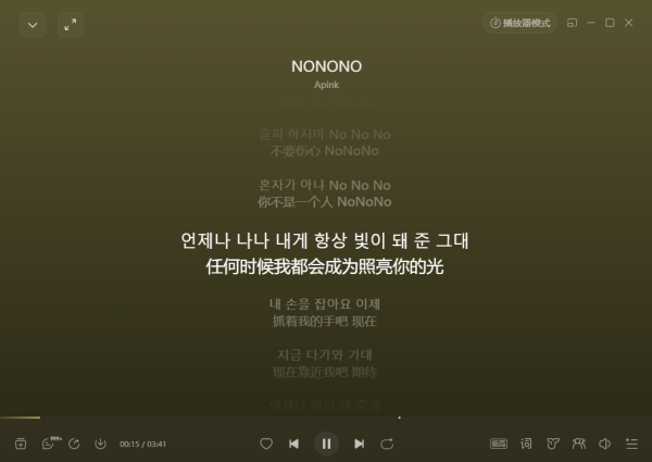 ●网易云音乐:同样支持桌面歌词显示,用户可对歌词的显示样式进行个性化设置,点击桌面歌词左上角标志可以快速打开歌曲详情页。在桌面歌词上可以快速调整歌词前进或后退,不用在软件内部寻找歌词调整,这个功能大大的提升了使用的便捷性。