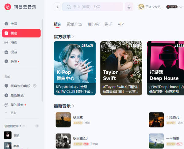 ●网易云音乐:曲库也较为庞大,在独立音乐和海外音乐方面资源优势较强。