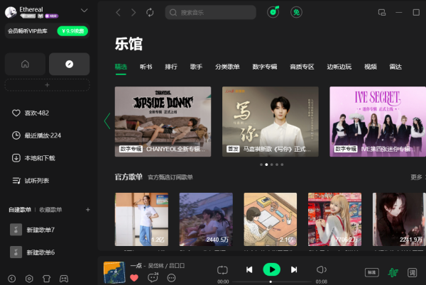 ●网易云音乐:支持换肤功能,有两种可以选择,分别是官方的免费皮肤和会员使用的会员皮肤,用户可根据自己的喜好更换软件界面风格。网易云音乐只有会员才可以自定义换肤,不支持非会员用户自定义换肤。