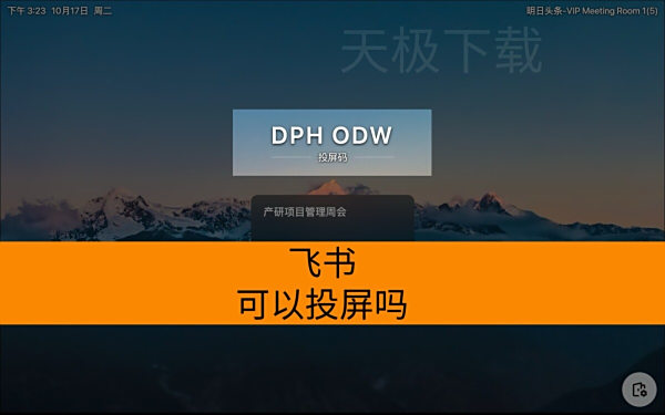 飞书支持投屏功能,、可以通过无线连接将电脑或手机屏幕内容共享到电视、投影仪等显示设备,支持最高4K分辨率及高清/流畅模式切换,用户需输入投屏码或在管理员开启蓝牙投屏功能后免输入投屏。