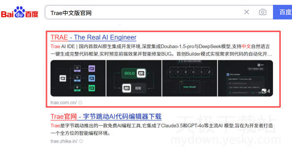 ○打开电脑浏览器,搜索“Trae中文版官网”,找到并打开官方网站。
