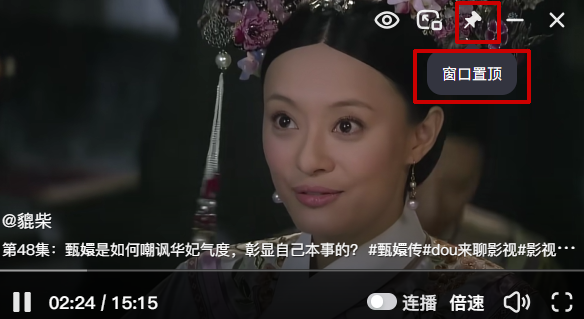 ●置顶功能:开启置顶窗口会悬浮于所有其他应用窗口之上,确保视频内容不会被遮挡,让你在任何工作状态下都能瞥见播放内容。
