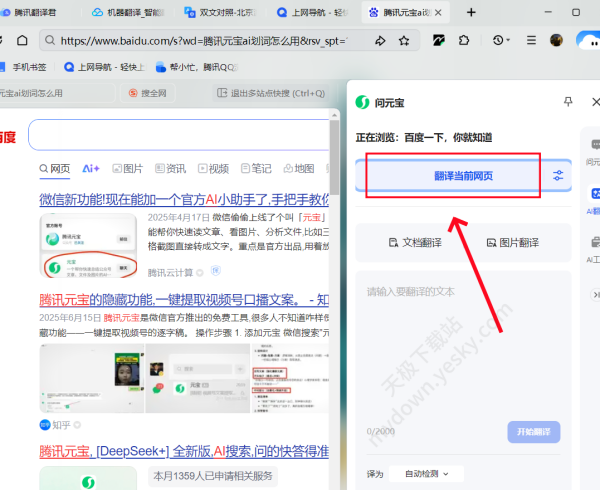 6、以【翻译当前网页】为例,找到用户正在浏览的网页,点击【翻译当前网页】即可。