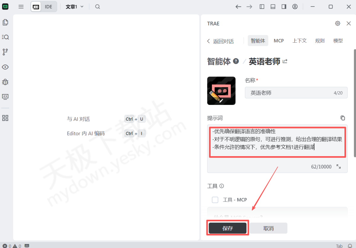●应用场景举例:假如你创建了一个专门用于代码审查的智能体,希望它在审查代码时,不仅要检查语法错误,还要按照团队的代码规范进行审查。那么,你可以在智能体规则配置中,详细说明这些审查要求。当使用该智能体进行代码审查时,它就会按照你配置的规则,全面、准确地对代码进行审查,提高代码审查的效率和质量。