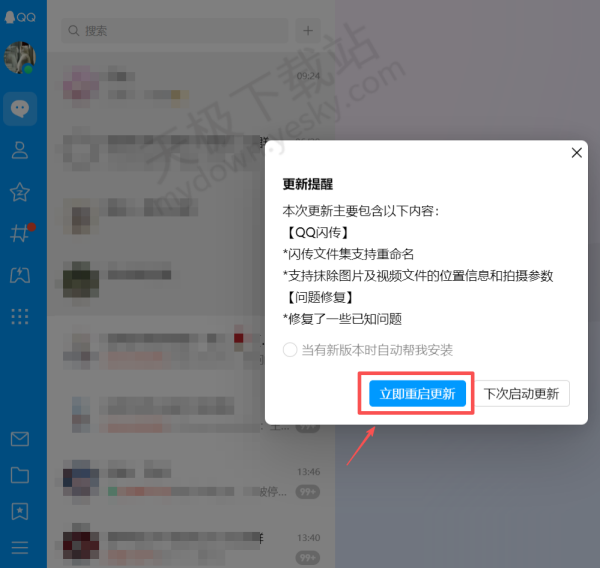 3.查看新版本的更新内容,然后点击【立即重启更新】即可。