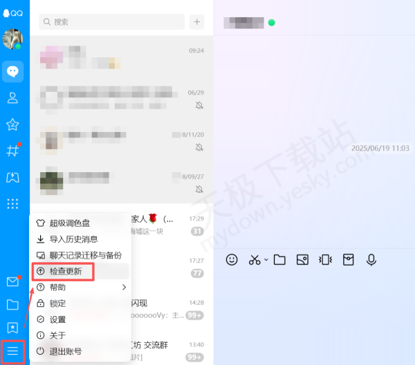 1.在QQ电脑端左下角点击【☰】,然后选择【检查更新】。