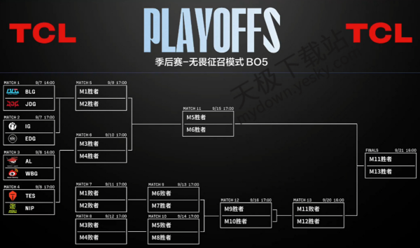 ●季后赛第一轮由登峰组率先晋级的4支队伍(TES、IG、BLG、AL)进行优先选边。
