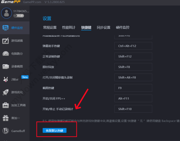 5、如果快捷键设置过程中出现问题可以点击【恢复默认热键】对快捷键设置进行恢复。