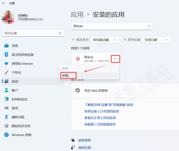 ●找到纳米AI,点击右侧【...】-【卸载】。