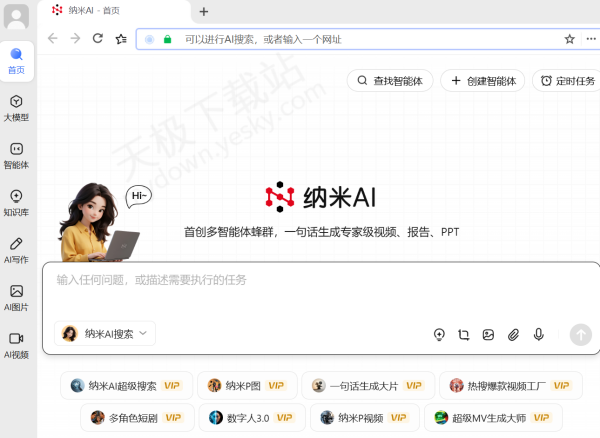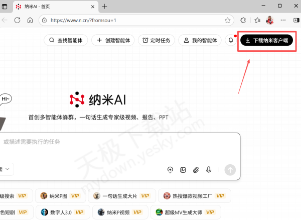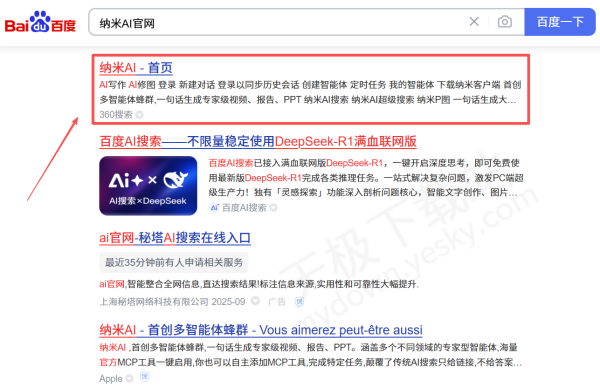 ●打开电脑浏览器,搜索“纳米AI官网”,找到官网链接并打开。