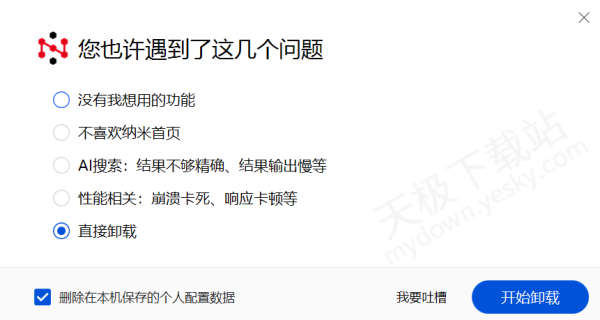 ●在卸载窗口中点击左侧【直接卸载】,然后点击【开始卸载】。