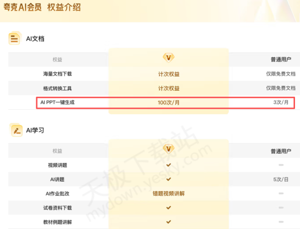 实测结果显示,夸克浏览器的AIPPT工具需要付费才能下载。生成和编辑PPT是不收取费用的,下载PPT每个用户有每月3次的限制,超出该次数后,需购买夸克AI会员方可解锁后续下载权限。