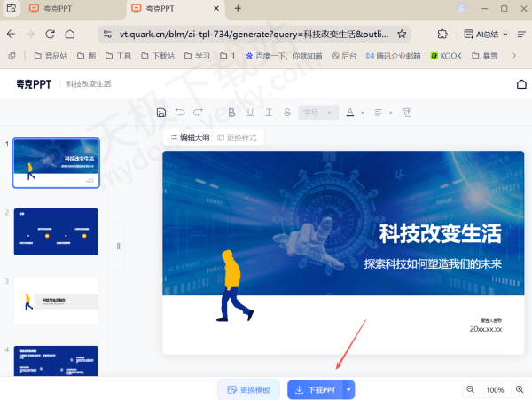 4.生成完整的PPT后,我们可以对其内容进行细致编辑,完成后点击下方【下载PPT】即可。