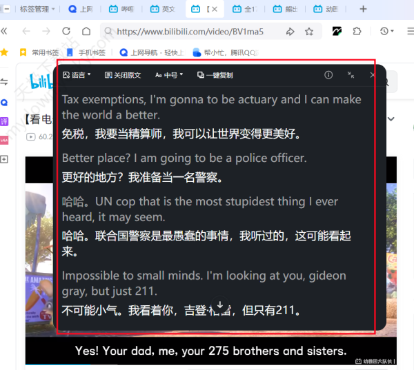 6、用户可点击【放大】按钮→【一键复制】复制所有字幕。