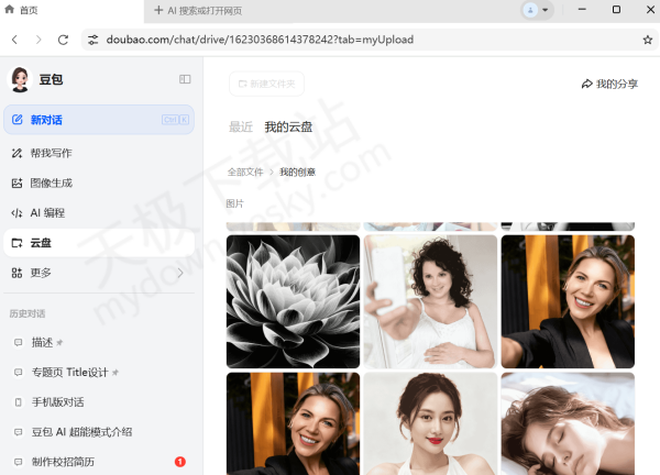 经实测,豆包AI图像生成记录是保存在豆包AI云盘中的,云盘中的记录删除,我们可以在对话记录中找回,不过查找起来比较麻烦,而且如果对话记录也一并删除的话,那生成的AI图像就再也找不回来了。