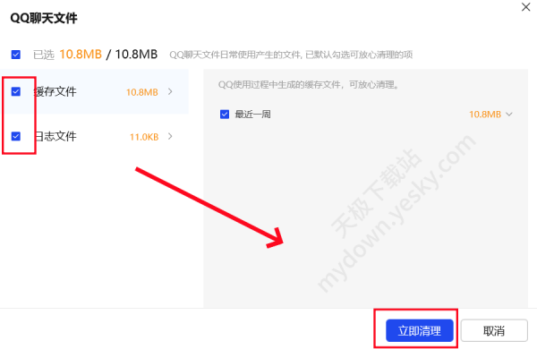 4、点击【选择清理】→【勾选清理选项】→【立即清理】。