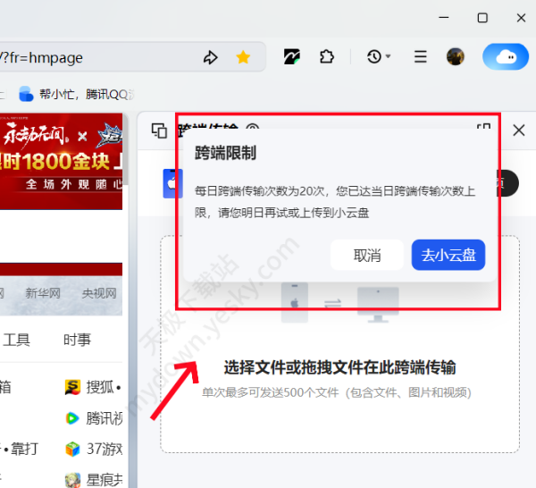 答:经调查,跨端传输每天最多可传输20次文件,超过该次数之后当日将不能再使用跨端传输功能进行传输,但还可以接收文件。