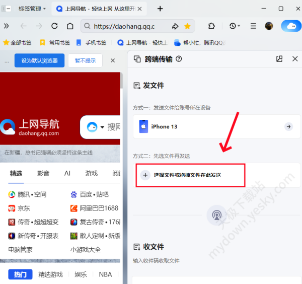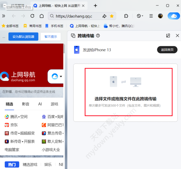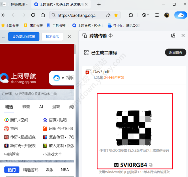 方法二:先选择要发送的文件,会生成跨端传输的二维码或提取码。