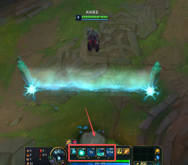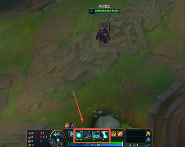 2.这样我们可以在下面英雄的技能面板处看到具体的法力消耗了。