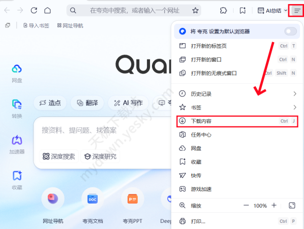 提示:当前教程所对应的夸克浏览器电脑端版本为2025最新版V4.5.5.535。