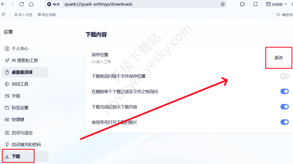 2、在设置界面左侧工具栏中找到【下载】并点击,就能看到【保存位置】,点击更改即可。