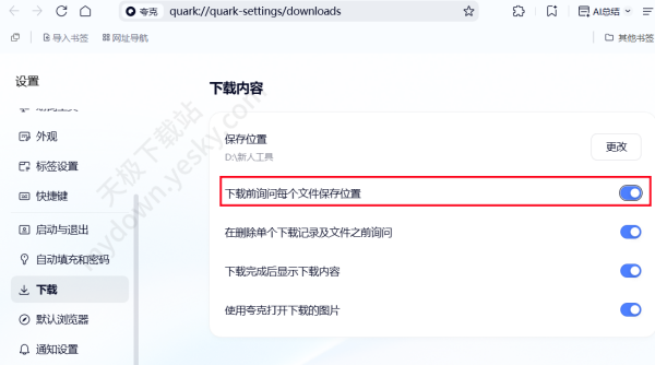 答:经实际测试验证,夸克浏览器是不支持在下载过程中更改保存位置的,用户可以开启【下载前询问每个文件保存位置】,在下载前弹出的下载提示框中更改保存位置。若下载已经开始,则需要取消下载任务,重新点击下载链接更改保存位置。