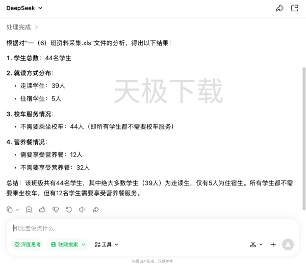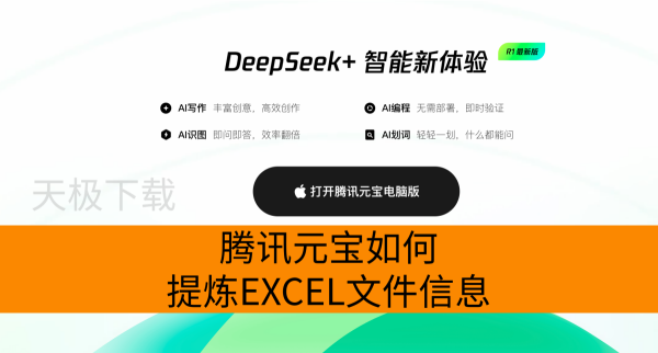 腾讯元宝支持高效提炼Excel文件信息,依托于强大的AI能力,对Excel文件进行信息整合,帮助用户提炼出精华信息,具体操作如下: