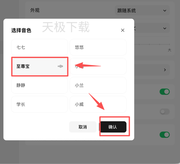 3.选择需要更换的AI音色,点击【确认】,即可更换AI音色。
