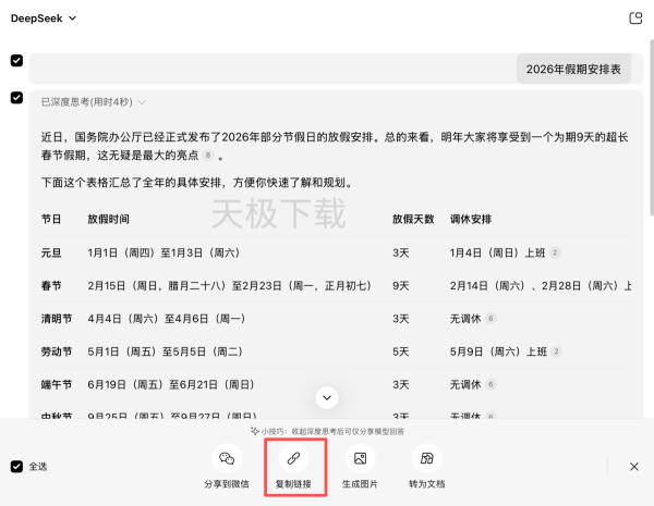 2.选择【复制链接】,即可得到内容链接,用户直接粘贴即可使用。