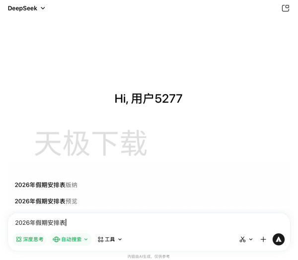 1.打开腾讯元宝,输入需要生成的指令,例如:2026年假期安排表。