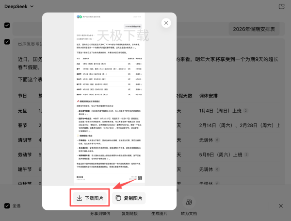 腾讯元宝可以将回答内容输出成图片形式,方便用户下载使用,具体操作方法如下: