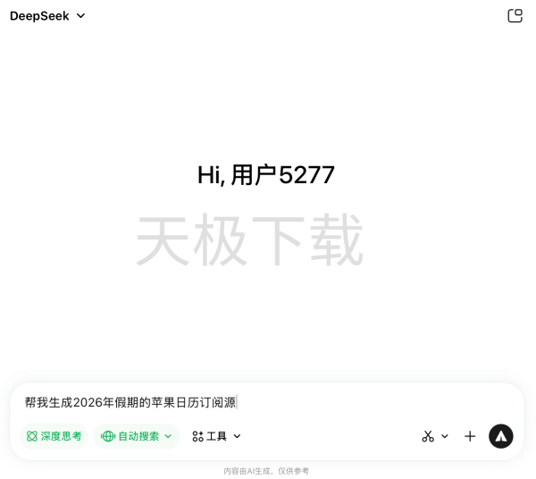 1.打开腾讯元宝,输入指令,例如:帮我生成2026年假期的苹果日历订阅源。