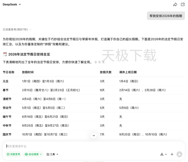 1.打开腾讯元宝,输入指令,例如:帮我安排2026年的假期。