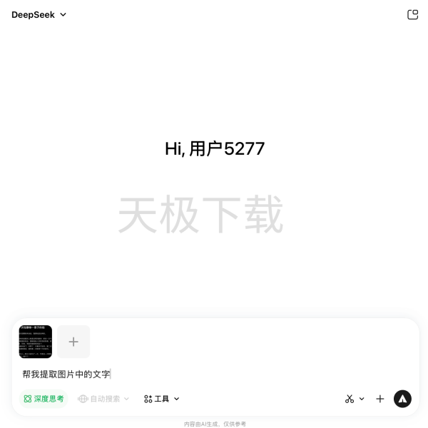 2.在对话框内输入指令,例如:帮我提取图片中的文字。