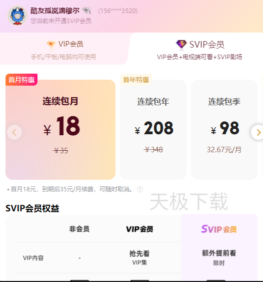目前优酷会员分为VIP和SVIP两种,收费价格不同: