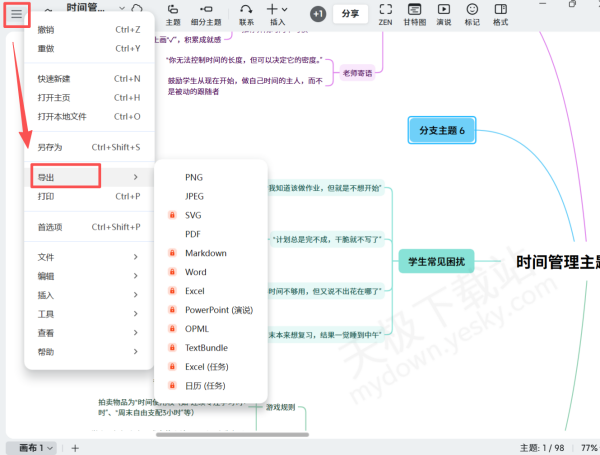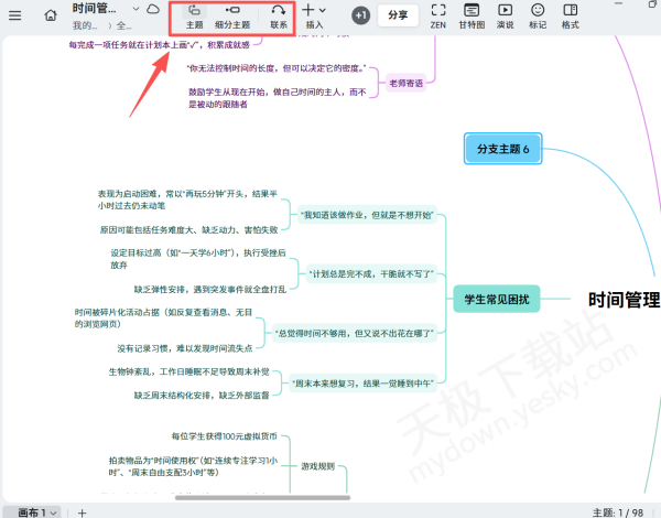 4.还可以用上方主题工具,为思维导图添加新的分支。