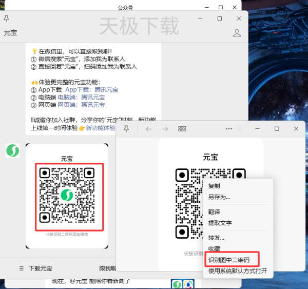 6.打开公众号发送的二维码截图,并且【右键】-【识别图中二维码】。