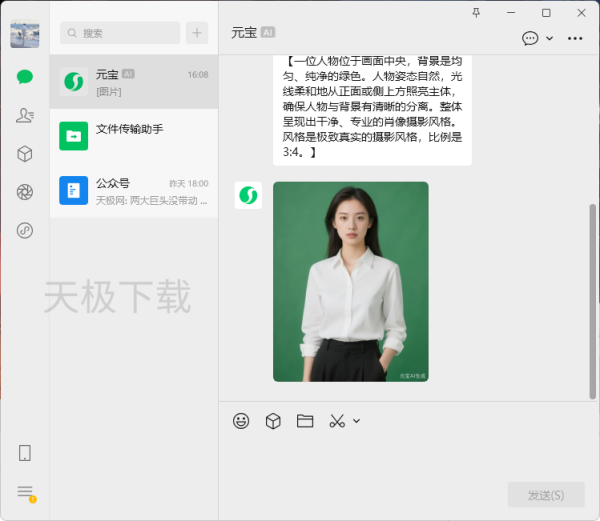 腾讯元宝微信好友支持P图,只要用户将图片通过聊天窗口发送给元宝,然后输入需求,腾讯元宝即可完成P图。