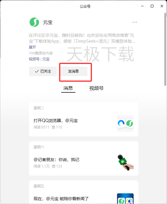 4.关注后点击【发消息】。