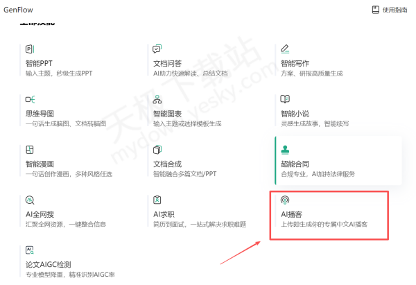 2.在AI工具这里找到【AI播客】选项。