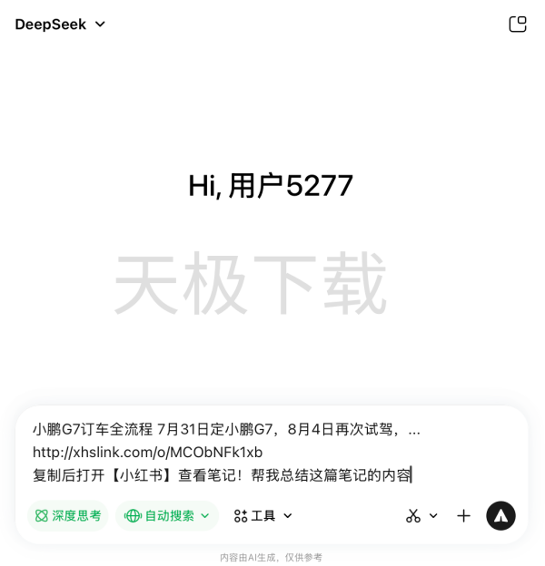 腾讯元宝支持解析小红书的内容,具体操作如下: