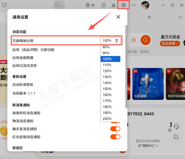 经实测,淘宝桌面版金额面字体大小是通过调整页面缩放比例实现的,具体方法如下。