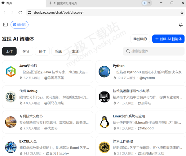 2.AI智能体功能。支持自定义或使用他人创建的智能体机器人,在电脑端针对性处理各种任务,提高工作效率。