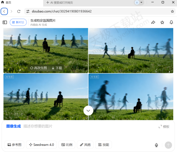 ●豆包:搭载最新Seedream4.0模型,在电脑端支持文生图和图生图功能。可生成人像摄影、电影写真、中国风、动漫、3D渲染等多种风格的高质量图像。