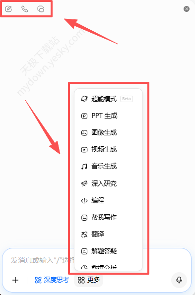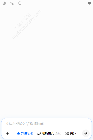 4、浮窗对话跟正常页面功能是一样的。左上角可以打开新对话、语音通话、在主页面中打开,对话框中快捷功能也都齐全。
